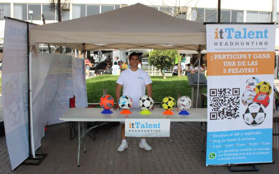 Además de patrocinar al equipo ganador, IT Talent aprovechó esta ocasión para interactuar con los asistentes y compartir más sobre nuestra misión y visión. Durante el evento, realizamos un sorteo de 5 pelotas, el cual estuvo abierto a todo el público presente, brindando la oportunidad a todos los asistentes de participar y ganar.